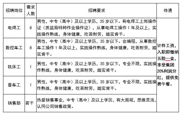 因工作需要,公司現面向社會外部招聘以下人員,具體要求如下: