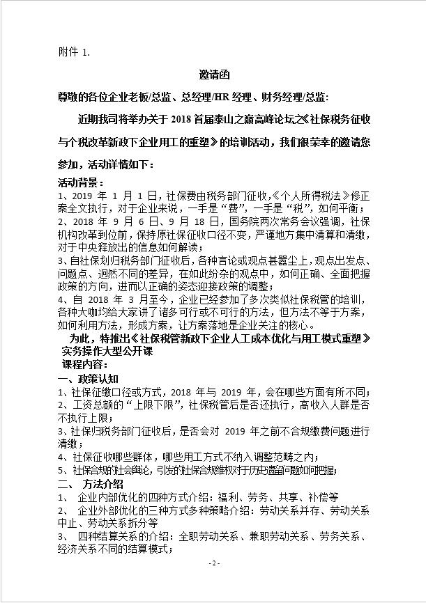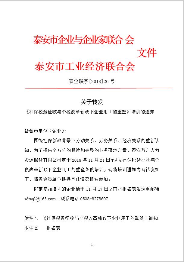 關于轉發 《社保稅務征收與個稅改革新政下企業用工的重塑》培訓的通知