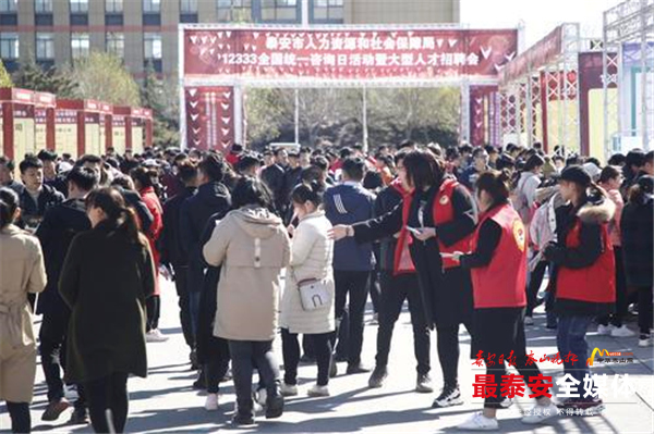 職場迎來又一年的 " 金三銀四 "。為了進一步搭建就業供需平臺,解決企業用工問題和群眾就業問題,3 月 30 日上午,12333 全國統一咨詢日活動暨大型人才招聘會活動在泰山國際會展中心北廣場拉開帷幕。本次活動以 " 智慧人社、智慧服務、助力發展、 保障民生 " 為主題,分為人社局綜合服務、綜合招聘、校企供需雙選會三大板塊,其中,校企供需雙選會共有 7 家重點企業和 7 家駐泰高校參加,達成初步意向 107 人。綜合招聘區共吸引了全市 272 家企業、單位參加,其中包括我市 80% 雙 50 強企業,現場提供 10680 個崗位。活動吸引上萬人次參加,初步達成就業意向 2500 余人。綜合服務區共發放政策宣傳資料 3000 余份,解答現場咨詢 400 余件,現場辦理社保查詢、靈活就業人員自助繳費等業務 130 余人次,指導群眾下載安裝 " 泰安人社 " 手機 APP、關注 " 泰安人社 " 官方微信 400 余人次。