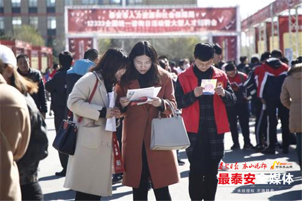 據了解,12333 全國統一咨詢日活動暨大型人才招聘會活動共吸引了石橫特鋼集團有限公司、山東康平納集團、泰開集團、泰山石膏有限公司、泰山玻璃纖維有限公司、泰安航天特種車有限公司、瑞星集團股份有限公司、山東泰盈科技有限公司等 272 家單位,提供 10680 個崗位。其中來自各縣市區的骨干企業 196 家,提供崗位 7412 個,涵蓋工業、科技、醫療、地產、物流、商貿、教育、消費等 20 多個重點領域的企業,此外,我市 80% 的雙 50 強企業到現場招聘。