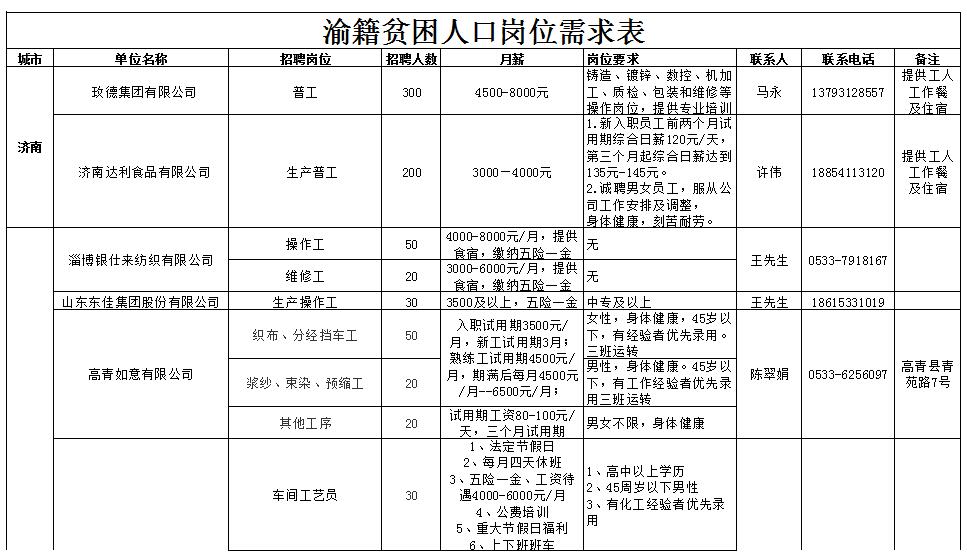 為認真貫徹落實習近平總書記在決戰決勝脫貧攻堅座談會上的重要講話精神,全面落實省、市對脫貧攻堅工作的決策部署,切實做好疫情防控期間東西勞務協作工作,泰安市人社局定于2020年3月23日—4月3日在“泰山集結號”微信公眾號和泰安市招聘網通步開展泰安市魯渝勞務協作網絡招聘會,在全省范圍內精心篩選征集120余家公司實力雄厚、發展前景良好、員工福利待遇較高的用工企業和人力資源公司,提供500余個工作崗位,邀請巫溪縣有意愿外出務工的貧困勞動力線上參與選崗,推動實現巫溪貧困勞動力轉移就業和我市企業順利復工復產的雙贏。