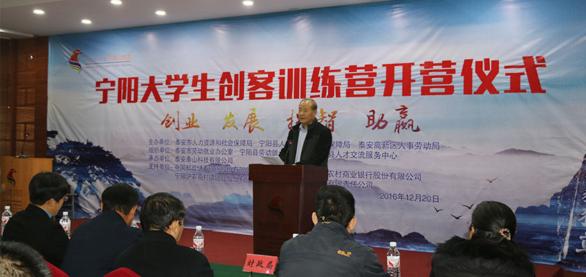 2016年12月20日,為更好地培育創新創業人才,搭建創業者交流平臺,營造“大眾創業,萬眾創新”良好環境,由泰安市人力資源社會保障局、寧陽縣人力資源和社會保障局,泰安高新區人事勞動局,寧陽縣人才交流中心共同主辦,泰安泰山科技有限公司(省級創業孵化示范基地)承辦,中國郵政儲蓄銀行寧陽縣支行、農村商業銀行寧陽支行、寧陽滬農商村鎮銀行、寧陽鑫橋信用擔保有限責任公司為支持單位,以創業•發展,提智•助贏為主題,“寧陽大學生創客訓練營”在寧陽縣隆重舉行了開營儀式,這是我市召開的第六次創客訓練營活動。